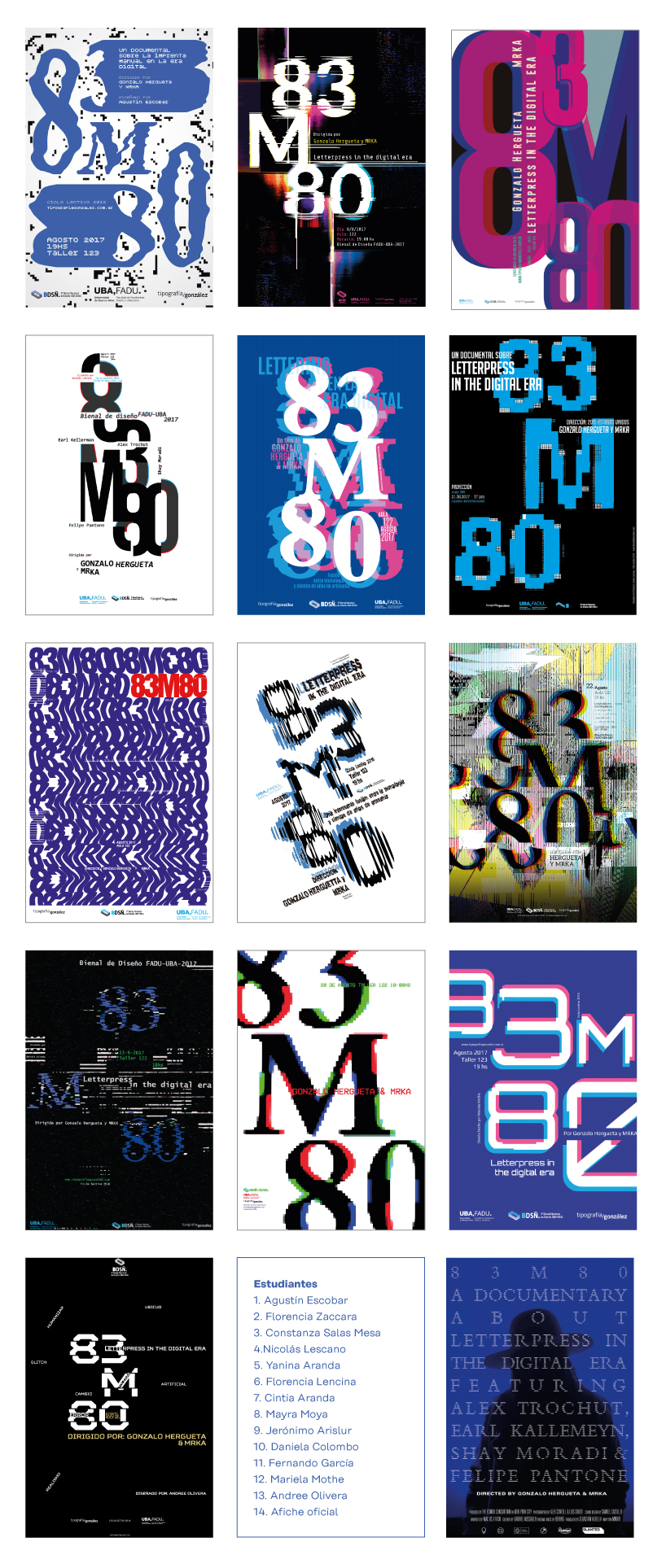 “Habiendo crecido en la era previa a Internet, queríamos rendir homenaje a las imágenes que experimentamos en nuestra infancia. Las distorsiones causadas por los monitores CRT, la baja resolución de las consolas de videojuegos de primera generación y los errores constantes de las computadoras de los años 90, al aplicar estos elementos a la técnica atemporal de la impresión tipográfica, nació 83M80 ". - Gonzalo Hergueta
