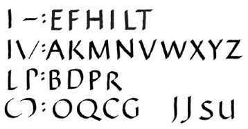 Esquema con los trazos constitutivos de las letras mayúsculas del