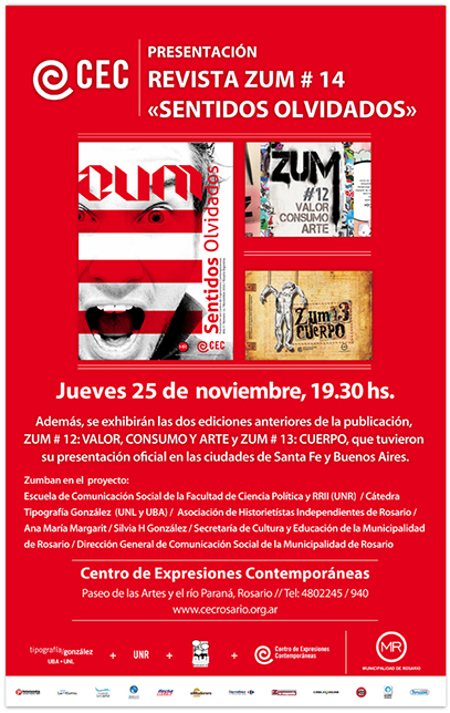 Buceando en la opinión de una generación que pide pista, oídos atentos, ojos avizores de la novedad, a sabiendas de que en ella están más que el germen de la creación sus propios valores estéticos y por qué no éticos que se vinculan para un proyecto común: ZUM, una publicación del Centro de Expresiones Contemporáneas de la ciudad de Rosario.