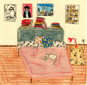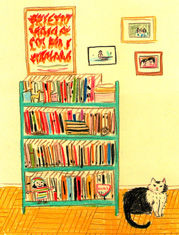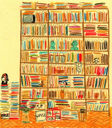 «Creo que se puede saber mucho de alguien por la forma en que acomoda sus libros. Algunos ordenan por autor, colección o editorial, otros por color. Hay bibliotecas divididas en muchos ambientes de la casa. Dibujé una biblioteca que estaba adentro de un ropero, otra que estaba sobre el respaldar de una cama, muchas están llenas de miniaturas, muñecos o plantas. Me da mucha curiosidad poder ver todo eso, me parece que es más íntimo que mostrar el cajón de las medias y la ropa interior.»