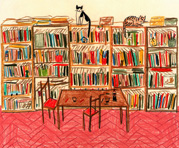 Hace un tiempo María decidió retratar las bibliotecas de sus amigos. «Un domingo a la tarde fui a dibujar a la casa de Alina Calzadilla [ilustradora rosarina]. Estaba aburrida, no sabía qué hacer, su biblioteca estaba justo enfrente mío y la dibujé. Al día siguiente me pareció que esa idea podía continuar y que podía pedir fotos de las bibliotecas que me interesaran. Me gusta pensar que esa colección puede seguir creciendo durante mucho tiempo, un poco se convirtió en una obsesión y me dan ganas de dibujar las bibliotecas de todas las personas que conozco. Junto con el pedido de la foto les mando un encuesta con preguntas sobre la manera en la que organizan sus libros, dónde los guardan, si los prestan, si conservan libros de la infancia y algunas más.»