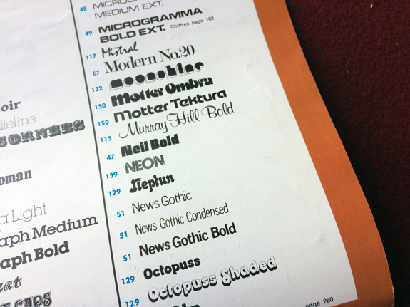 Catálogo inglés de Letraset (mediados de los ‘70)