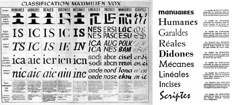 Con el fin de unificar y sistematizar la categorización tipográfica según sus rasgos principales, Maximilien Vox estableció una clasificación tipográfica que 6 años más tarde fue adoptada por la ATypI.