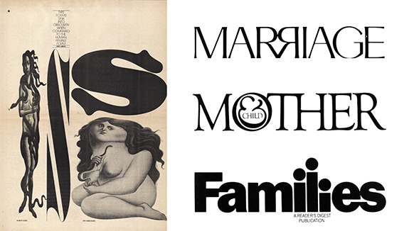 U&lc volumen 1.1, Página 6. 1973 / Diseño de logotipos: Marriage (1965), Mother and Child (1966), Families (1980).