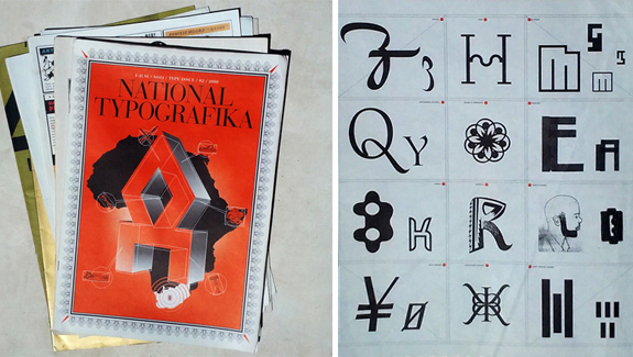Izquierda: Tapa de la edición «National Typographica» de la revista I-JUSI, Febrero de 2000.