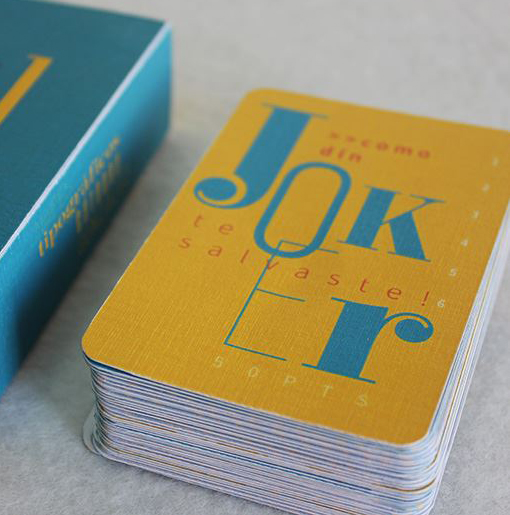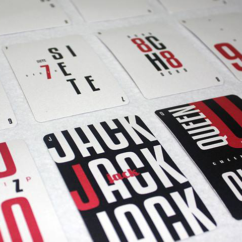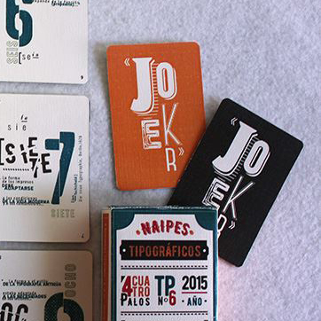 Arriba, de izquierda a derecha: Naipes tipográficos, trabajo de estudiantes de 2015. (Ivan González, Mercedes Ventocilla, María Julia Menta)