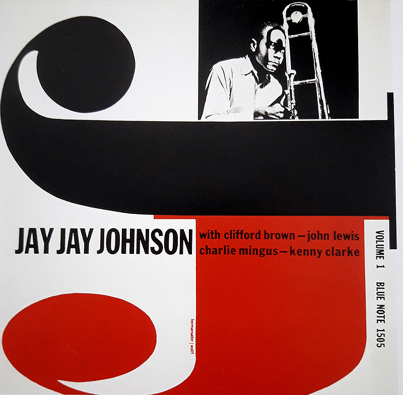 Tapa de disco para Blue Note Records, diseñada por John Hermansader, 1956.