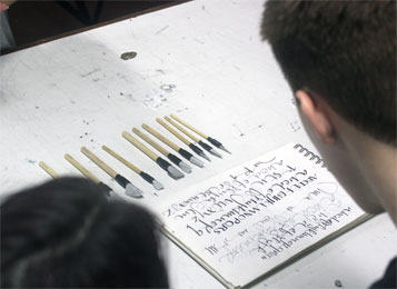 Es la herramienta más usada en la caligrafía. Se pueden encontrar de varios tipos, formatos y materiales. Según sea el modelo caligráfíco a realizar será el tipo de pluma que se usará: chata, redonda o en punta.