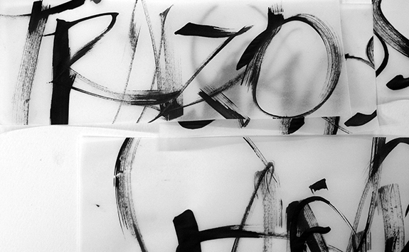 Trazos de Hernán García (estudiante de T1 UNL 2013) en una visita de la calígrafa Marina Soria al taller.