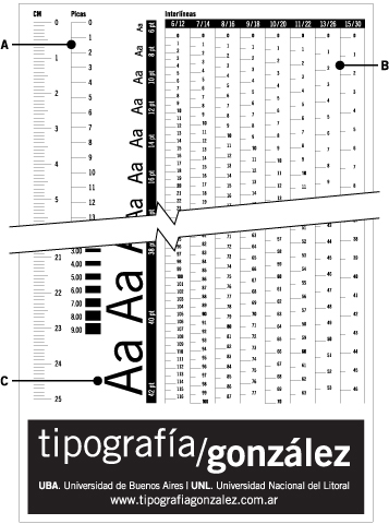 B . Reglas en puntos, se usan de base a base de cada línea para medir el alto de la columna de acuerdo a los diferentes interlineados. (6/12 significa que usando de a dos líneas se cuenta con una separación de 12 puntos).