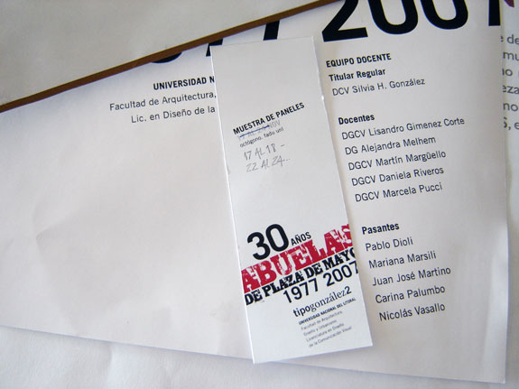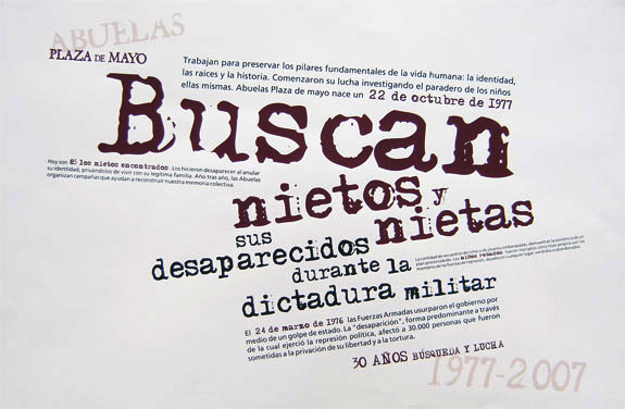 La cátedra plantea, cada año, su compromiso por las temáticas de interés social, vinculándolas con el aprendizaje de la tipografía. En 2007 Abuelas de Plaza de Mayo cumplió 30 años luchando por la libertad, la justicia y la identidad. En la cátedra nació la necesidad de expresar un merecido reconocimiento por esta lucha trasladando el tema al taller.