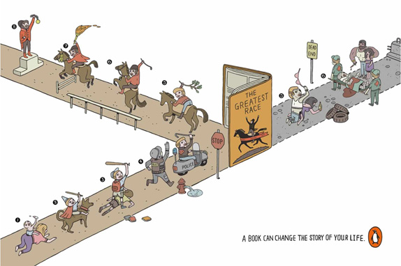 Este lema es el elegido por Penguin Books en 2011, una campaña llegada desde China, que nos enseña con humor cómo la literatura puede cambiar el curso de nuestra existencia.