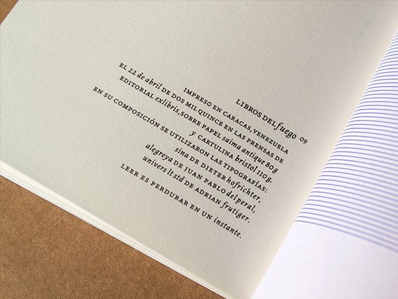 Por supuesto que verse al lado de diseñadores hiperfamosos —quizás demasiado— como Irma Boom, por ejemplo, es muy impresionante, y en ese sentido ayuda a dar a conocer el trabajo, no solo el mío, sino el de mi editorial y a lo mejor exagero el de una región, yo creo que los logros ya no son solo de Venezuela, también lo son de Chile, país donde resido y de donde es Javier Quintana, amigo tipógrafo que me permitió usar Violeta en el libro premiado, y de Colombia país donde mi editorial está también. Pero, si me preguntan de nuevo, creo que el premio más importante que he recibido es el II Premio Latinoamericano al Diseño Editorial, yo considero que ese esfuerzo de la Fundación El Libro es muy necesario para la región, para vernos un poco más, para pensarnos y por qué no: celebrarnos.