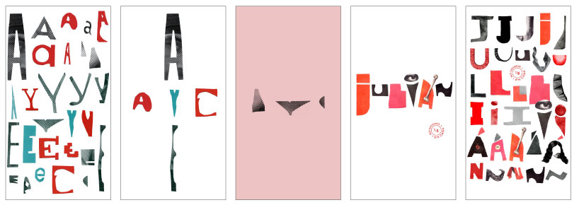 · Una vez que tengas varias versiones recortadas de cada letra —te sugerimos aproximadamente unas 5 distintas de cada una— diagramar las siguientes composiciones: