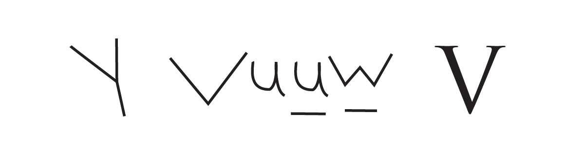 Los romanos no tuvieron sonido “V”. En cuanto a la minúscula ha existido en versiones caligráficas muy redondeadas, similares a la “u”, pero la imprenta recogió en mayor medida la agudeza de la versal.