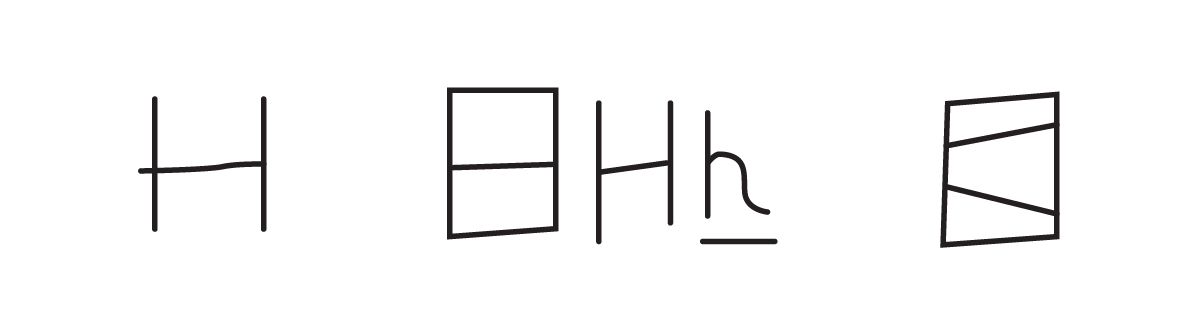 Su forma probablemente deriva del pictograma que representaba al terreno cultivable en los jeroglíficos egipcios.