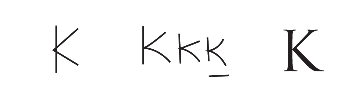 La letra Ka proviene de la semita kaph y de la griega kappa