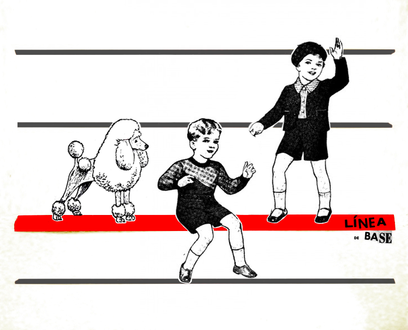 Es la horizontal invisible donde apoyan los signos, tanto los de caja alta (mayúsculas) como los de caja baja (minúsculas). Todos los trazos que la atraviesan son llamados descendentes.