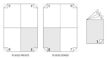 El pliego se compone siempre por un número de páginas múltiplo de 4 (4 / 8 / 16 / etc).