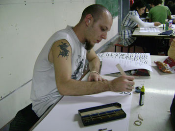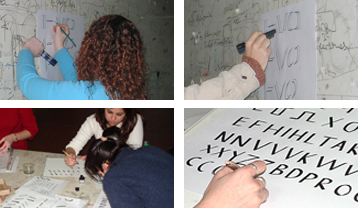 Comprender y sensibilizarse con el trazo, ritmo y estructura de la letra en función del instrumento utilizado. Lograr una articulación óptica y rítmica entre los distintos signos. Comprender las identidades individuales como partes de un sistema homogéneo.
