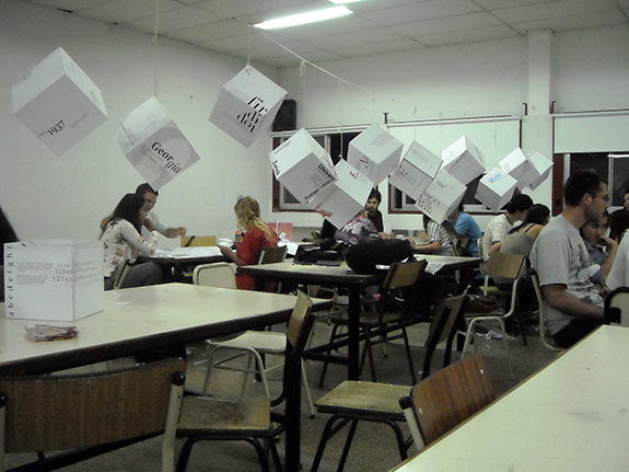 Cada uno de los cubos relata, a elección del estudiante, sobre el hacer de un tipógrafo.