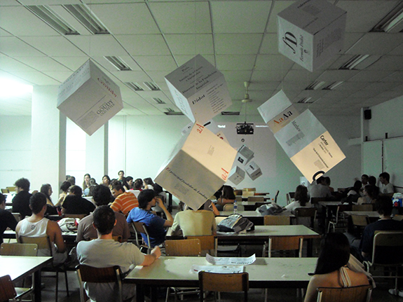 En este trabajo abordamos la tipografía en el espacio desde un soporte acotado: un cubo, que tendrá un recorrido en la información y que se visualiza desde diferentes lados.
