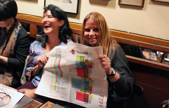En las mesas de los bares entre los poetas, circulaba el diario: casi oculta, Sonia Sacarabelli de Rosario; se rie a carcajadas Laura Solórzano de México y Ana María Falconí de Perú.
