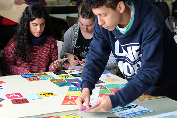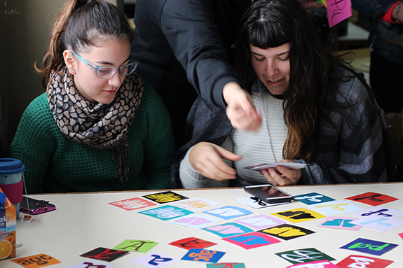 A partir de las letras del nombre del estudiante desarrollan las posibilidades expresivas de los signos, diferentes grafías que los representen en las redes, por eso lo llamamos “tipo de perfil”, y visualizarán diferentes usos del color.